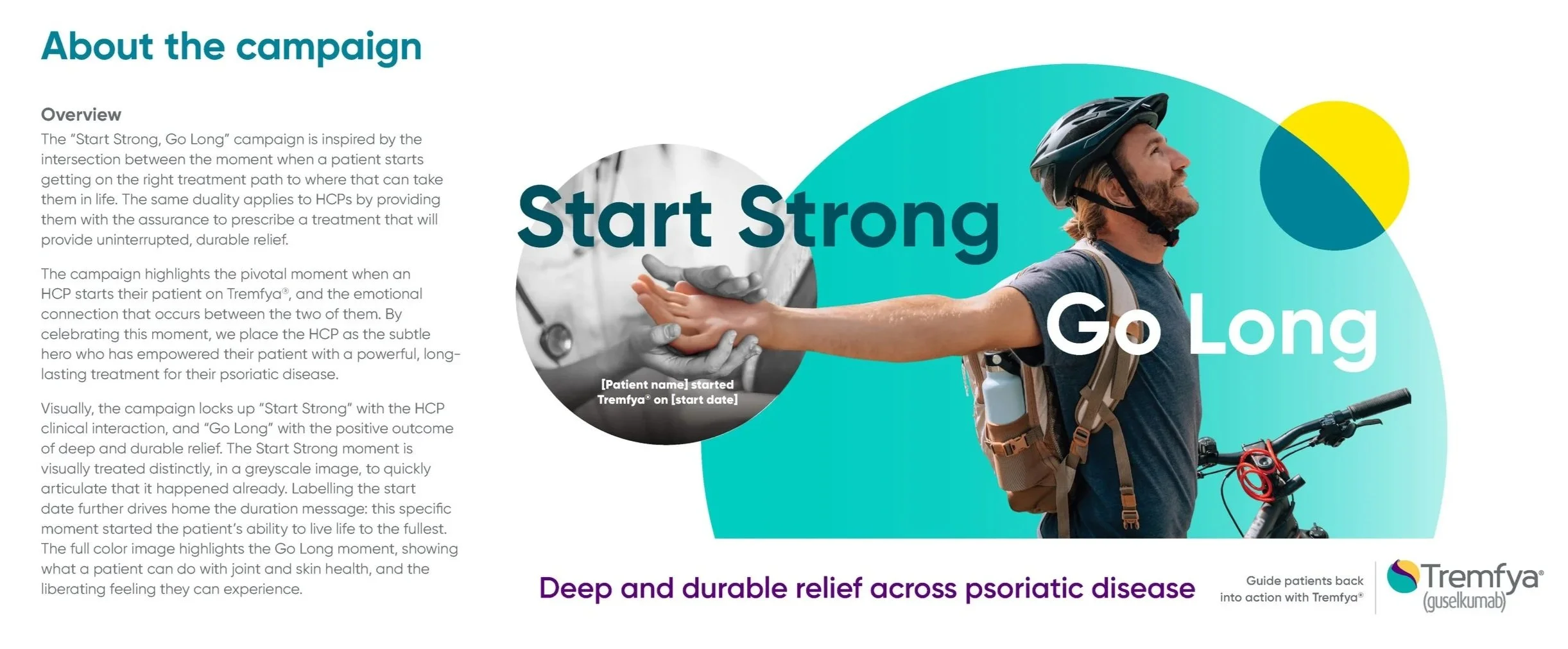 Tremfya is a world leader in medicine for PsO and PsA. For their global relaunch, I helped to create brand guidelines to ensure consistency for their global relaunch.